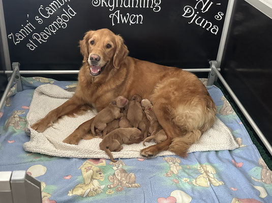 Am 30.08.2025 um 10:15h kam der erste Welpe zur Welt und in Windeseile brachte Awen sieben weitere zur Welt.